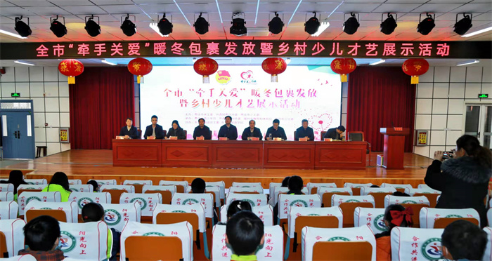 1月6日上午,由市青少年宫与滕州团市委联合承办的全市“牵手关爱”暖冬包裹发放暨乡村少儿才艺展示活动第四站在滕州市东沙河街道中心小学举行。团市委四级调研员秦军,市青少年宫主任种燕、副主任郭向东,滕州团市委副书记胡垒以及滕州市东沙河街道、滕州市教体局等相关部门的领导和东沙河街道牵手关爱结对帮扶的农村留守、困境少年儿童,有艺术特长的乡村少年儿童、东沙河街道中心小学师生代表一起参加活动。