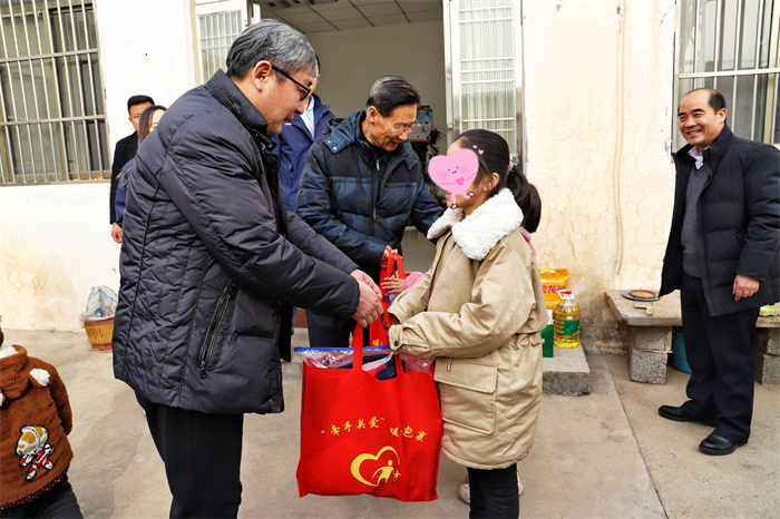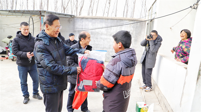 1月15日上午,市关工委副主任李华中,团市委副书记赵波,在市中区委常委付永、区关工委常务副主任王广德,市青少年宫主任种燕、副主任郭向东,团区委书记王尧及税郭镇、西王庄镇等相关部门负责同志的陪同下,来到市中区税郭镇纪官庄村、东南村、西三屯村,西王庄镇刘耀村、前小湾村等地探望慰问留守、困境少年儿童。市青少年宫专门给6名“希望小屋”小主人送来装有棉衣、保温杯、跳绳等物品的暖冬包裹以及食用油、大米、面粉、牛奶、福字春联等慰问品,把新春问候和祝福送到了他们家中。