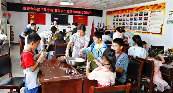 6月3日端午节,市青少年宫举办“聆听屈原故事 争做新时代爱国少年”和“我劳动 我快乐”学包粽子活动。市青少年宫副主任郭向东为全市少年队员代表讲授了端午的由来和风俗习惯,号召大家学习中国传统文化,过好中国自己的传统节日,增强文化自信,学好本领,努力创新,将来为国立功。