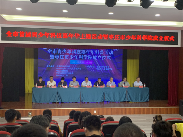 市关工委副主任杨家国,团市委副书记、市少工委主任赵波,市科协四级调研员费忠村,市老科技工作者协会副会长王胜黎,市教育科学研究院信息中心主任朱士雪,市青少年宫副主任郭向东、顾连军,市关工委《枣庄关爱》副主编张运祥,市人工智能学会会长焦开,市人工智能学会副会长黄金传等领导出席活动。有关学校、培训机构的领导和少科院首届小院士代表、获奖学生代表等也参加活动。