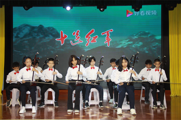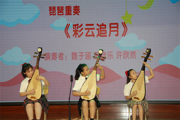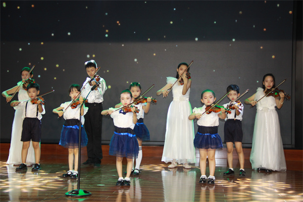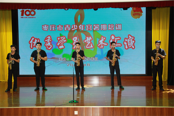 暑期培训汇报展演在原创歌曲《中国时代》中拉开序幕。萨克斯五重奏《rolling in the deep》的优雅婉转的曲调感染现场每一位观众;好声音播音主持班的同学带来的诗歌朗诵《因为有你》赞美了在危难时刻,挺身而出,与病魔作斗争,为我们筑起了一道安全屏障的医护人员、解放军、公安干警、社区工作者;小提琴合奏《渔舟唱晚》《小星星》等展现了民族音乐的魅力;长笛演奏《在内蒙古草原上》,描绘了蓝蓝的天上白云飘,白云下面马儿跑。舞蹈《花间意》、古筝齐奏《中华孝道》、歌曲《长城谣》和《渔光曲》激起了现场一阵阵热烈的掌声,好声音主持班的相声《吹牛》则带来了阵阵笑声。二胡齐奏《十送红军》、趣味篮球表演、长笛重奏《魔笛二重奏》、琵琶《铃儿响叮当》、《彩云追月》、民族鼓《牛斗虎》、配乐诗歌朗诵《长征》等精彩节目接连不断,充分展现了孩子们爱党爱国、奋发向上的精神风貌。