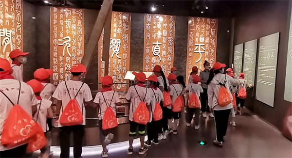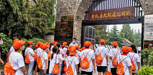 在台儿庄古城,同学们在被世界旅游组织誉为“活着的古运河”畔,听研学导师讲运河文化,探寻具有千年历史的运河文化遗产体系。走在被称为“中国民居建筑博物馆”的古城里,亲身感受一下“顺天然,亲人和”八大建筑风格,聆听“天下第一庄”的故事和深厚运河文化,参观主题博物馆,体验非遗传承。同学们参观以二战遗址为依托的“台儿庄大战遗址公园”,在苍夷满目的弹孔墙前,聆听那些感人的战争故事。感悟现实生活的来之不易。走进台儿庄大战纪念馆,全面展示了发生在一九三八年那场震惊中外的中日台儿庄大战,再现了台儿庄大战中爱国将士浴血奋战报效祖国的壮举。通过导师讲解,观看文字、图片、影视资料等,让同学们了解台儿庄大战的过程,追忆那场血与火的历史,缅怀英烈,珍惜现在的幸福生活。