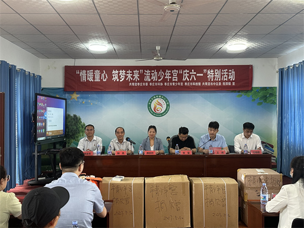 市青少年宫、市科技馆捐赠了文体用品和图书,团市委副书记颜蔚然同志讲话,指出,“情暖童心,筑梦未来”流动少年宫“庆六一”特别活动的开展,将有效激发和推动青少年学习宣传党的二十大精神的热情,体现中国式现代化进程中校外教育事业的责任与担当,进一步引导广大青少年践行社会主义核心价值观,激发广大青少年热爱祖国、热爱家乡,凝聚团结进取、奋发图强的强大精神力量。