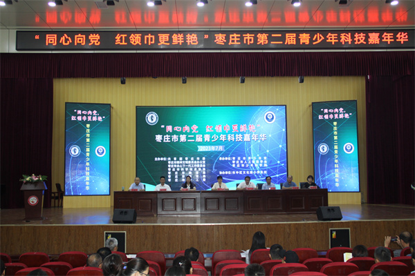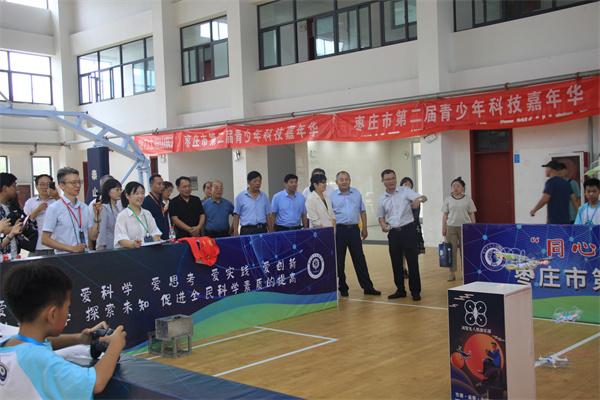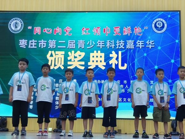 7月31日,由共青团枣庄市委、枣庄市精神文明建设委员会办公室、枣庄市关心下一代工作委员会、枣庄市科学技术协会、枣庄市教育局、枣庄市体育局、枣庄市少工委等七部门主办,枣庄市青少年宫、枣庄市人工智能学会、枣庄市少年科学院等三家单位承办的“同心向党,红领巾更鲜艳” 枣庄市第二届青少年科技嘉年华活动在市中区文化路小学东校隆重举行。