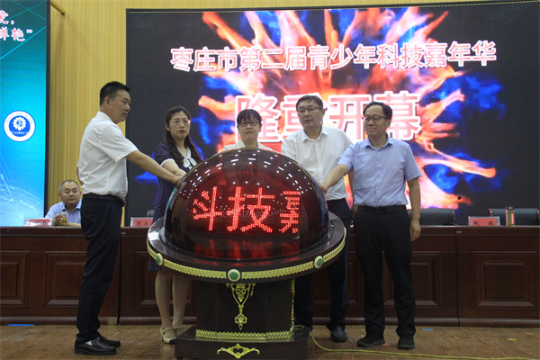 市关工委副主任徐玲同志讲话,对本次活动给予肯定并提出要求;韦德泉教授为同学们作科普讲座。与会领导共同为枣庄市第二届青少年科技嘉年华开启幕球,并参观市少科院文化路小学东校分院的科技体验馆,现场参观了同学们的精彩比赛。