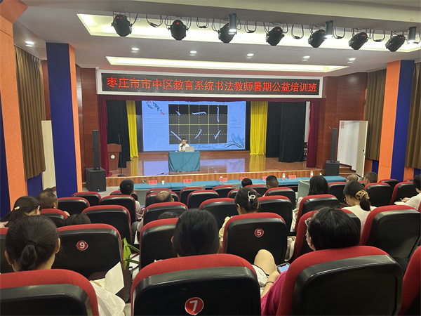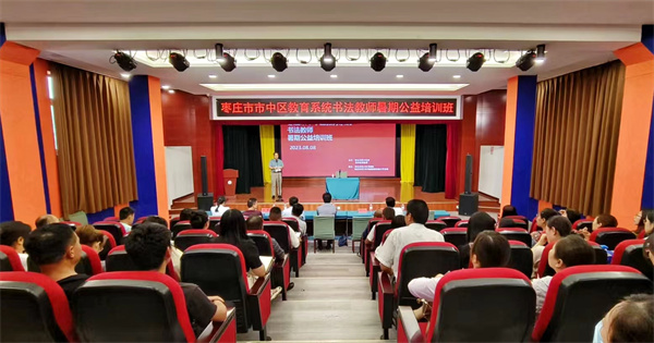 为了更好的助力学校“双减”政策落实,弘扬中华民族优秀传统文化,发挥青少年宫专业教育特长,根据省教育厅、省语委《关于加强规范书写汉字工作的指导意见》和《山东省教育厅关于开展 2023 年山东省小学书法教师“双姿”展示活动的通知》精神要求,进一步加强书法专业师资队伍建设,更好促进书法艺术进校园活动。市青少年宫和市中区语言文字工作委员会办公室共同于8月8日至9日举办了为期两天的“枣庄市市中区教育系统书法教师暑期公益培训班”,来自市中区区直和各镇街29所学校的46名书法教师参加培训,市青少年书画院的部分专业指导教师为参加培训班的基层书法教师授课。