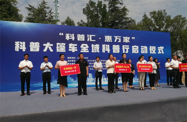为深入学习贯彻党的二十大精神,围绕“科创筑梦”助力“双减”、全面推进乡村振兴,充分发挥科普大篷车、流动少年宫、妇女儿童活动中心等科普资源优势,在全社会营造热爱科学、崇尚科学的良好氛围,助力我市“强工兴产、转型突围”实施目标,打通科普宣传“最后一公里”。6月7日,由市科协、市教育局、团市委、市妇联、市文旅局联合主办,市青少年宫、市科技馆、市图书馆、滕州市科协、柴胡店镇政府承办的枣庄市“科普汇 惠万家”科普大篷车全域科普行启动仪式在滕州市柴胡店镇古薛河驿站隆重举行。市人大常委会党组成员、副主任李书亭,山东省科技馆馆长王晶,市科协党组书记、主席国际昌,市科协党组成员、副主席李亚娟,团市委副书记颜蔚然,市文旅局党组成员、文化市场综合执法支队支队长孙业武,市妇联副主席孔娜,滕州市委副书记程亮等领导出席活动;市医学会专家、市农技专家、应急部门相关人员、柴胡店镇群众代表等参加活动。