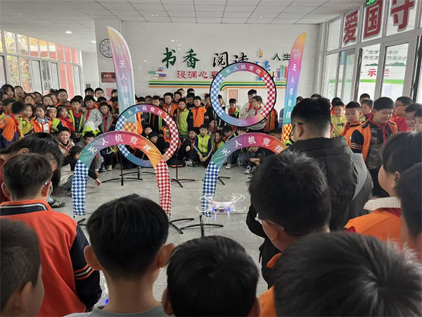 枣庄市少年科学院的专业辅导员给学生们展示了无人机飞行项目,辅导员们耐心指导着同学们操作无人机遥控装置,引起一片掌声和喝彩声。本次活动不仅丰富了孩子们的校园生活,也通过寓教于乐的方式让孩子们在轻松快乐的氛围中感受到了艺术与科学的魅力。