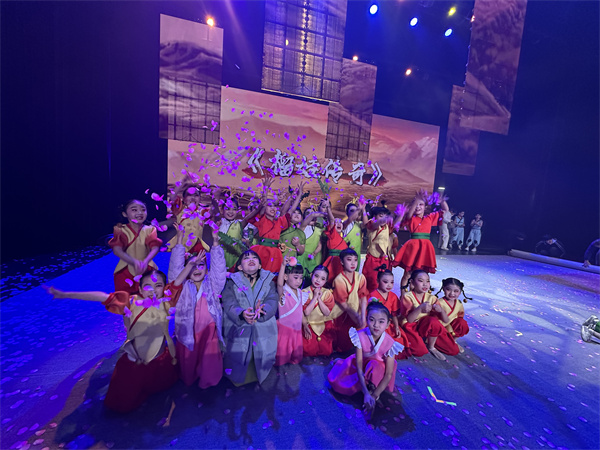 该剧是动画片《丝路》衍生系列作品之舞台剧,是强化树立枣妮、榴娃形象的精品之作。作为我市首部大型本土原创儿童剧目,《榴娃传奇》以独特的艺术形式,完美融合了地域优秀文化和创新科技与传统艺术,成为山东省首部引入AI数字动画和冰屏影像呈现技术的室内舞台剧。该剧的舞台设计堪称一绝,以石榴为核心元素,巧妙地将地方文化符号融入场景之中。灯光运用也极为精妙,根据剧情的起伏,配合孩子们的冒险情节,时而神秘紧张,时而明亮欢快,展现斗争胜利后的欢乐场景。演员们的表演更是可圈可点,他们用精湛的演技,把榴娃勇敢、善良、智慧的形象演绎得栩栩如生,让观众在欣赏舞台剧的同时,也领略到了冠世榴园的美景和石榴传说等枣庄独特的地域文化魅力。