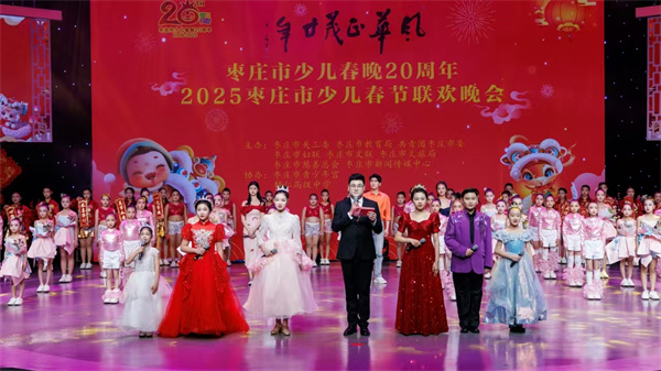 春节前夕,由枣庄市关心下一代工作委员会、枣庄市教育局、共青团枣庄市委、枣庄市妇女联合会、枣庄市文学艺术界联合会、枣庄市文化和旅游局、枣庄市慈善总会、枣庄市新闻传媒中心等有关单位主办,枣庄市青少年宫和枣庄市辅仁中学参与协办的枣庄市少儿春节联欢晚会暨枣庄市少儿春晚20周年庆典完美收官。这场盛会,无疑是少儿艺术领域的一场饕餮盛宴,更是枣庄市少儿文化艺术发展历程中一座熠熠生辉的里程碑。