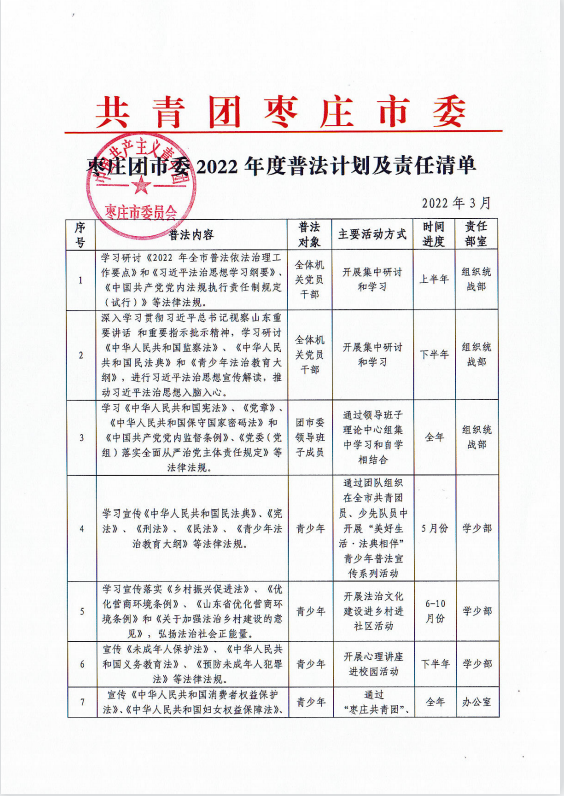 枣庄团市委2022年度普法计划及责任清单.pdf